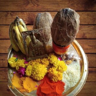 Prasad – one coconut,candy sugar,deities ember,Malavat,kumkum from feet.