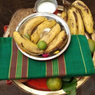 Prasad- one coconut,candy sugar,deities ember,Malavat,kumkum from feet.